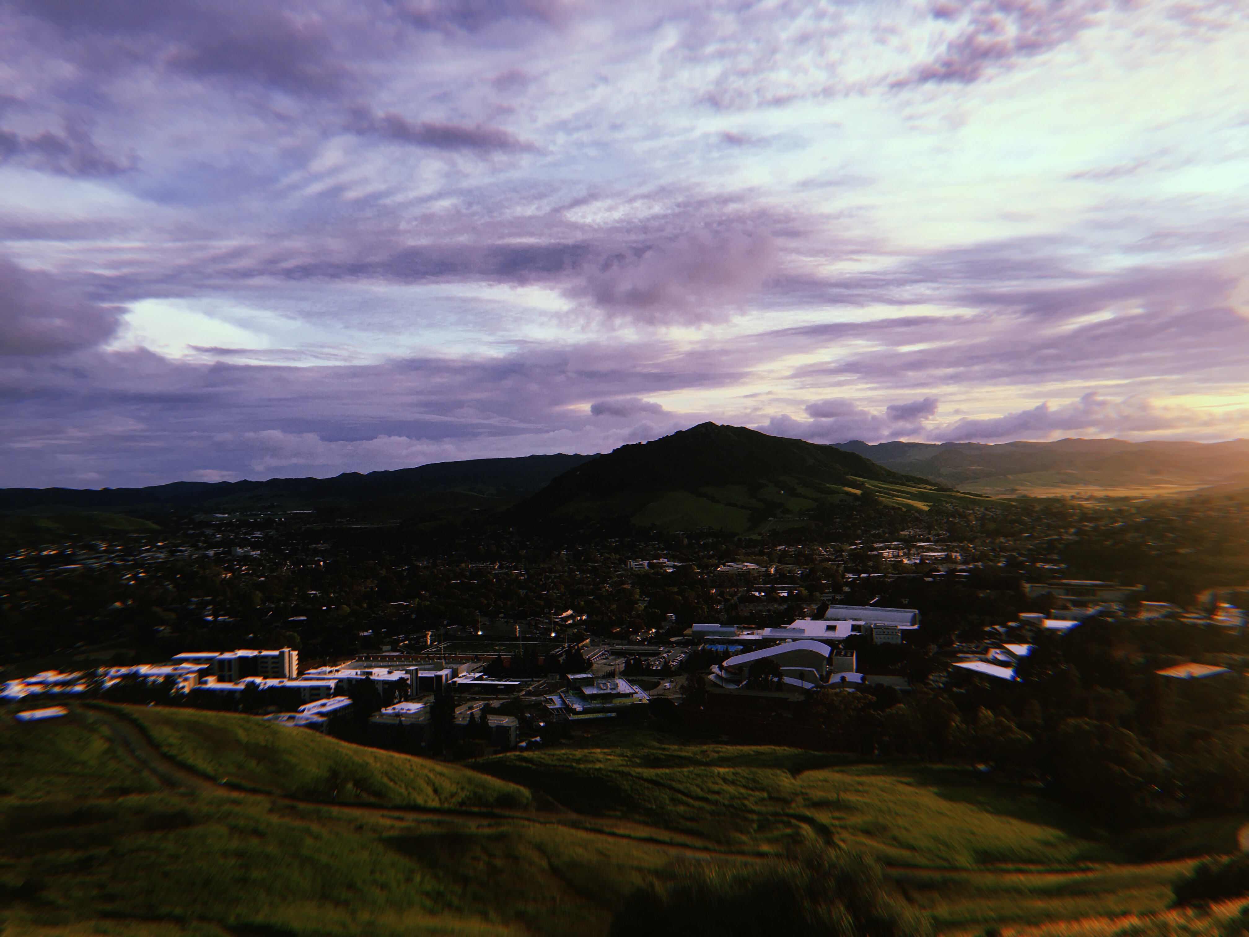 Once you make it to the top, a gorgeous view awaits you. I did this hike around sunset, so I was able to see the sun disappearing behind neighboring mountains at the time of these photos. At the base of the mountain honing the “P”, you can see all of Cal Poly SLO’s campus. If you look to the left, you can see more of San Luis Obispo. This hike is short and sweet, and offers views well worth your while.